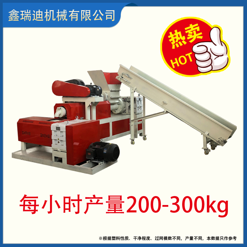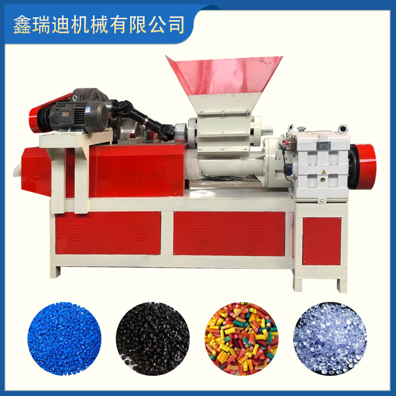 干造膜料造粒機(jī)可分為干造和水造,兩種機(jī)型不一樣,是將廢舊塑料進(jìn)行分類,將廢舊編織袋送入破碎機(jī)進(jìn)行破碎,然后經(jīng)過(guò)磨擦清洗機(jī)清洗,將破碎清洗好的料放入漂洗池里漂洗,讓編織袋所含雜質(zhì)進(jìn)行分離,雜質(zhì)沉淀,通過(guò)撈料機(jī)將我們所需的編織袋破碎料撈起備用;將漂洗好的料通過(guò)上料機(jī)投入造粒機(jī)主機(jī),通過(guò)擠壓、輸送、翻滾、加熱等程序達(dá)到塑化均勻擠出,再經(jīng)過(guò)副機(jī)擠壓拉條,冷卻后切粒。