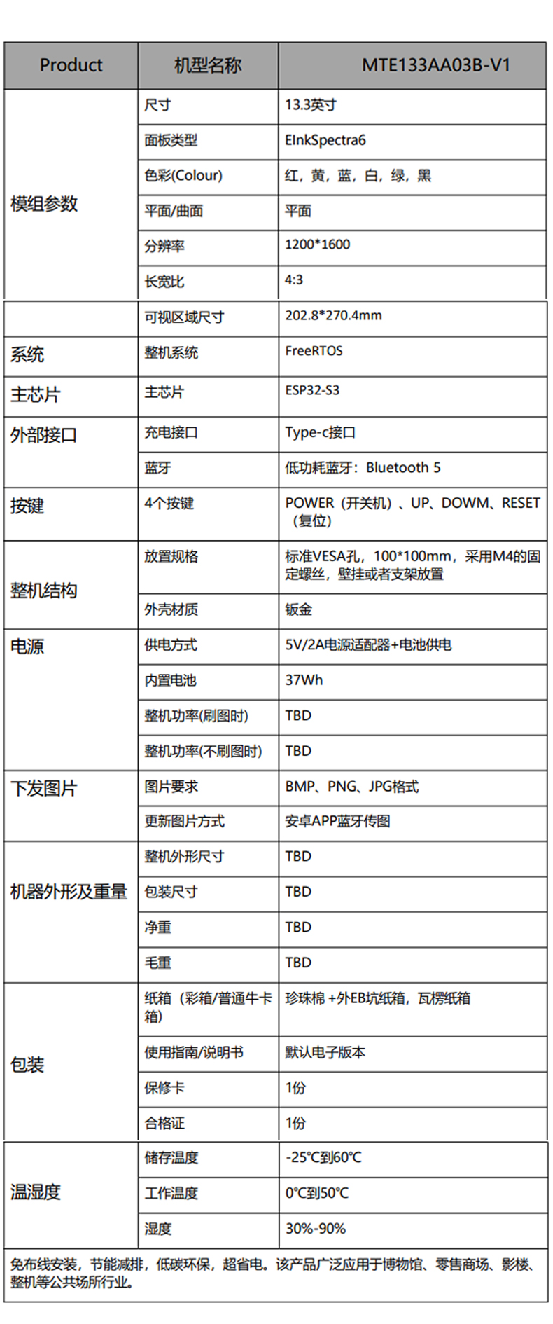 13.3寸電子紙墨水屏相框全彩低功耗1200*1600藍(lán)牙電子墨水顯示屏